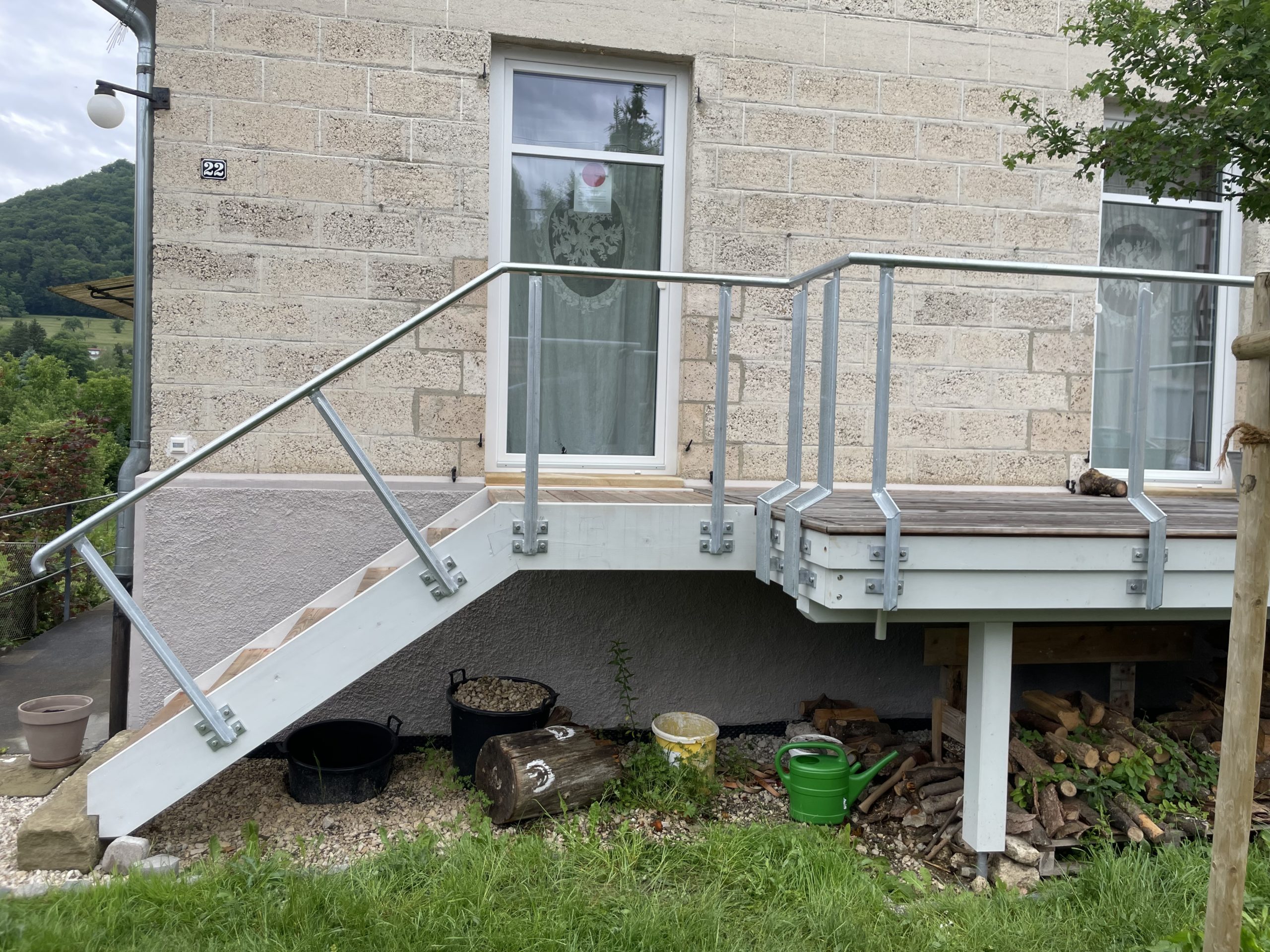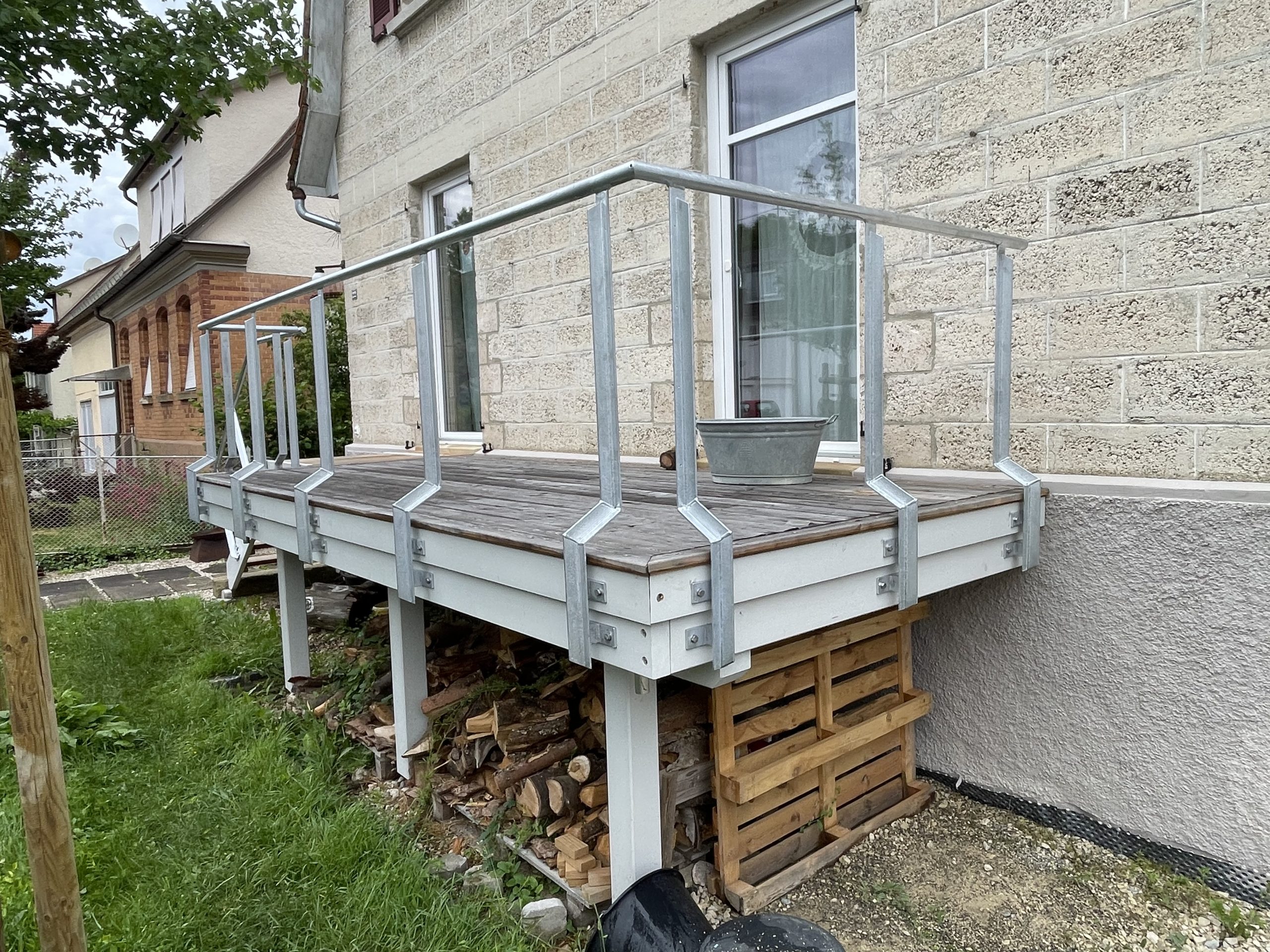Dazu liefern wir natürlich auch das passende Geländer, eine Überdachung oder einen Windschutz. Sie möchten vom Balkon direkt in den Garten? Kein Problem, auch Treppen haben wir im Programm.
